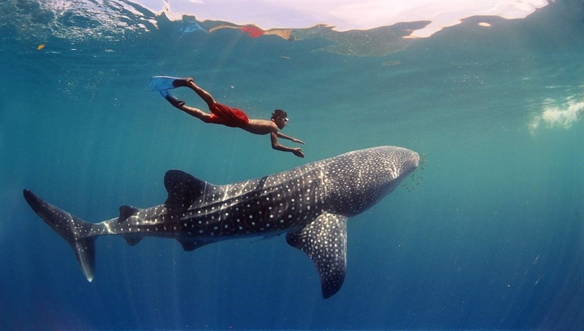 Swim alongside 10-meter (35-foot) whale sharks with the safety of our trained expert snorkeling guides. Journey with us away from your resort and out into the warm, clear waters of the Caribbean to the largest whale shark gathering in the world.